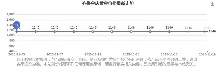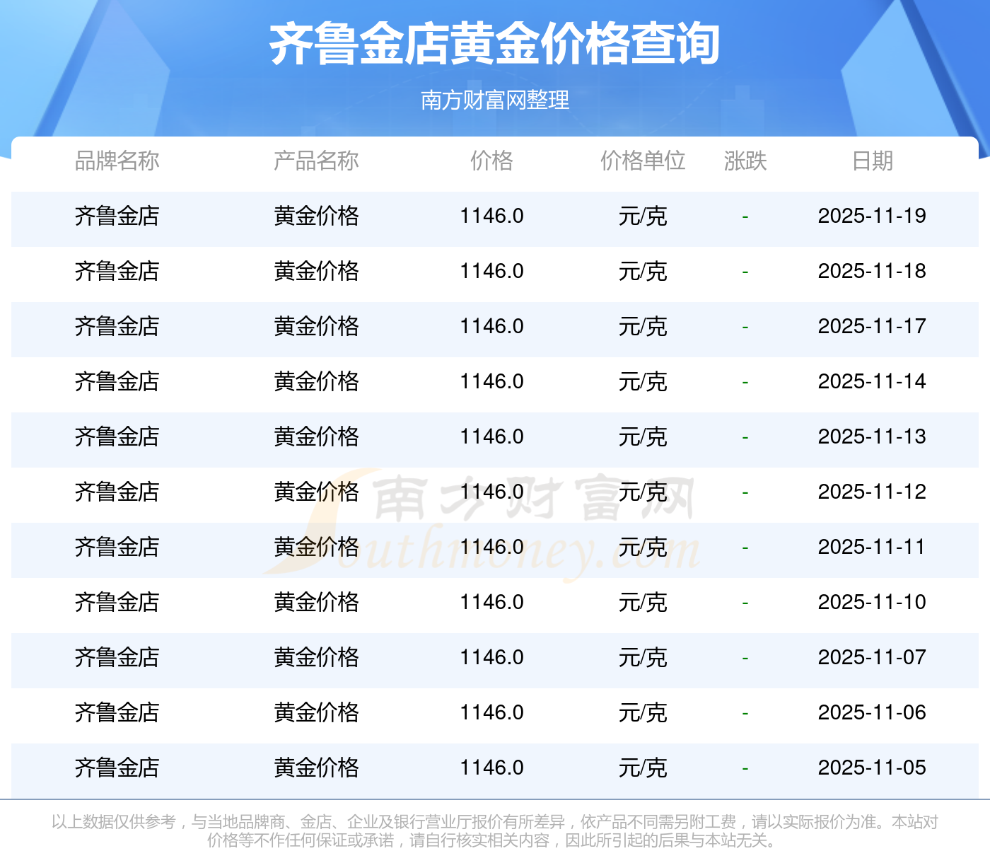 最新數(shù)據(jù)表明,齊魯金店今日 黃金價格為1146.0元/克。