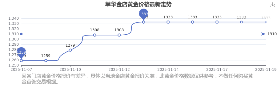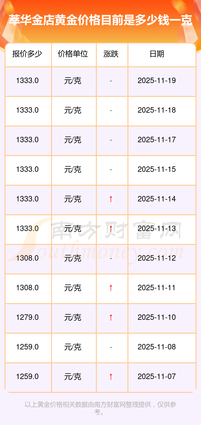 今日萃華金店黃金價(jià)格最新為1333.0元/克。