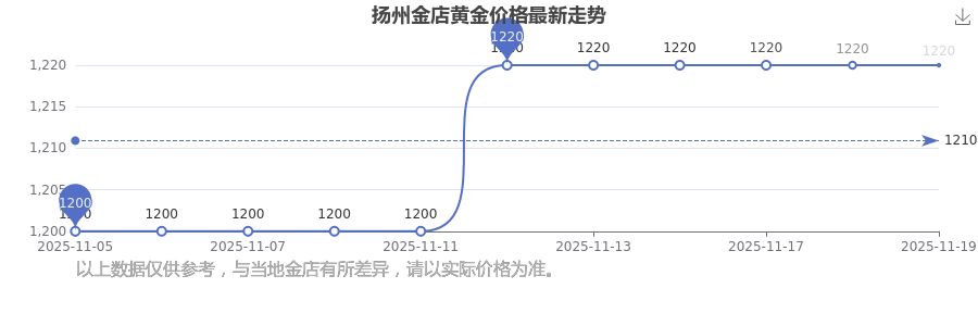 今日揚州金店 黃金價格最新的克重售價為1220.0元/克。