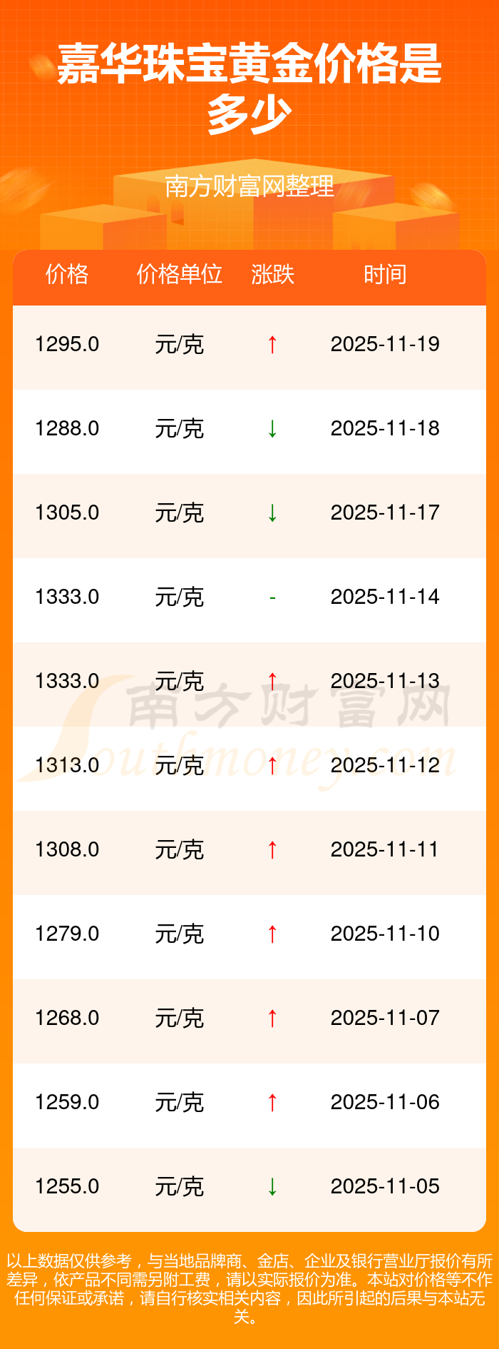 今天黃金價(jià)位怎樣?當(dāng)下一克黃金的價(jià)格為多少?黃金價(jià)格一般是多少錢一克?據(jù)了解,今日嘉華珠寶 黃金價(jià)格的最新價(jià)格為1295.0元/克。