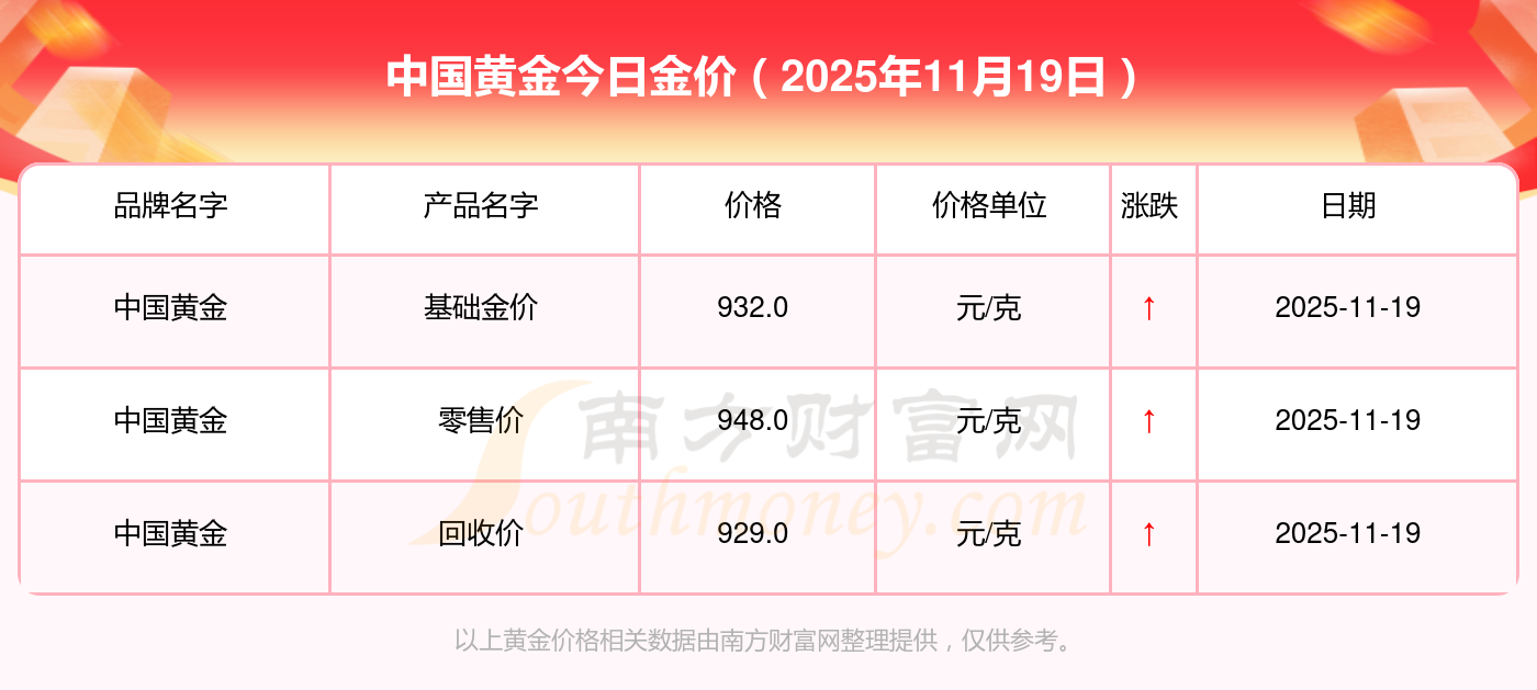 2025年11月19日中國黃金黃金價格表_今日中國黃金金價查詢