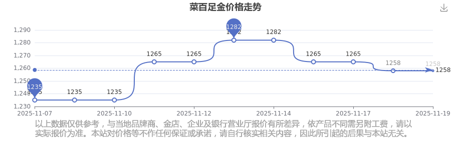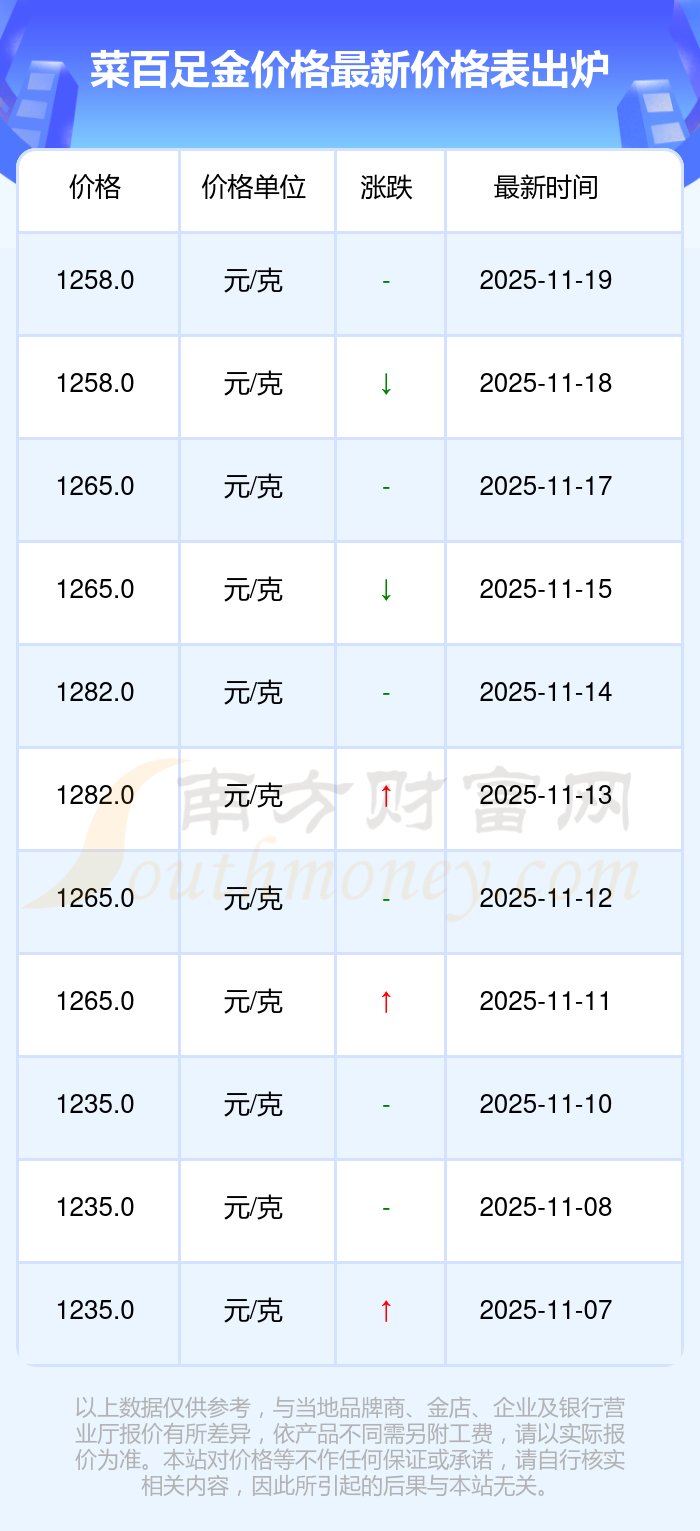 今日菜百所公布的 足金價(jià)格最新價(jià)格為1258.0元/克。