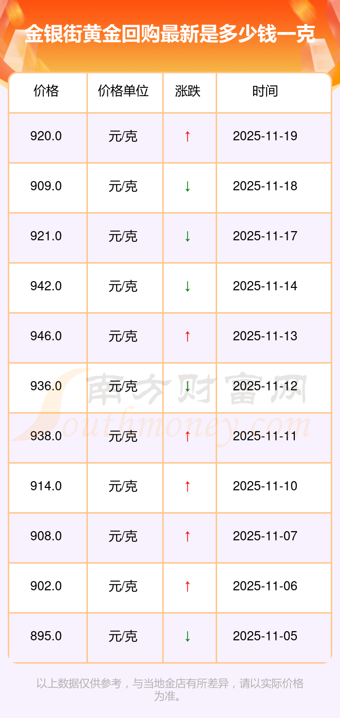 當下,金銀街 黃金回購今日的最新價格是920.0元/克。