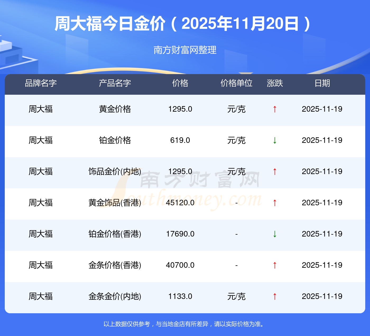 以上數(shù)據(jù)僅供參考,與當(dāng)?shù)亟鸬暧兴町,?qǐng)以實(shí)際價(jià)格為準(zhǔn)。