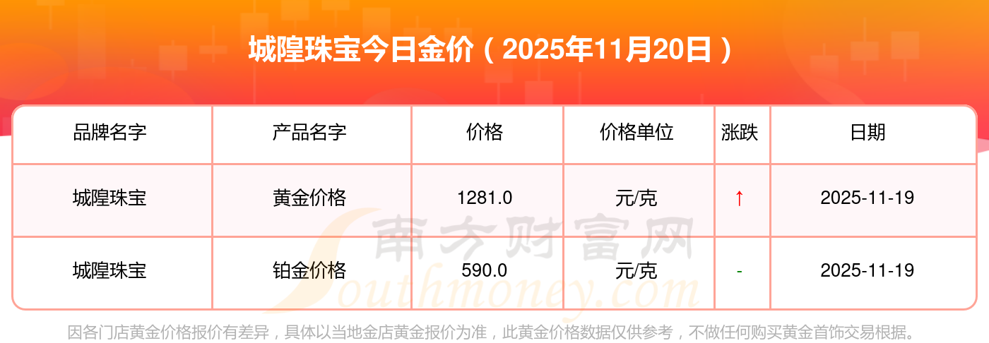 現(xiàn)在城隍珠寶黃金價(jià)格是多少錢1克_2025年城隍珠寶今日金價(jià)是多少錢一克,最新城隍珠寶查詢,2025年11月20日城隍珠寶黃金價(jià)格現(xiàn)在每克多少錢?最新城隍珠寶黃金價(jià)格報(bào)價(jià)公布,一起來看看吧!