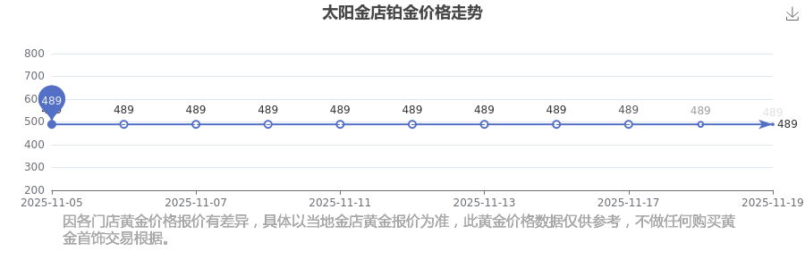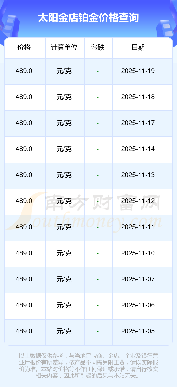 太陽金店 鉑金價格在今日更新至489.0元/克。