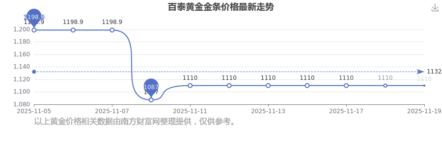 今日百泰黃金金條價格最新查詢:1110.0元/克。