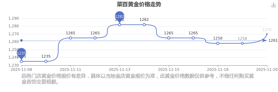 1270.0元/克是菜百在今日給出的 黃金價格最新價格。