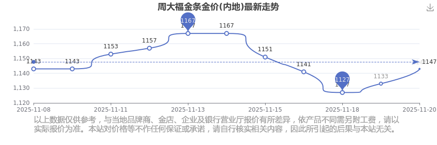 周大福今天金條金價(內(nèi)地)多少一克?最新周大福查詢,2025年11月20日周大福金條金價(內(nèi)地)現(xiàn)在每克多少錢?最新周大福金條金價(內(nèi)地)報價公布,一起來看看吧!