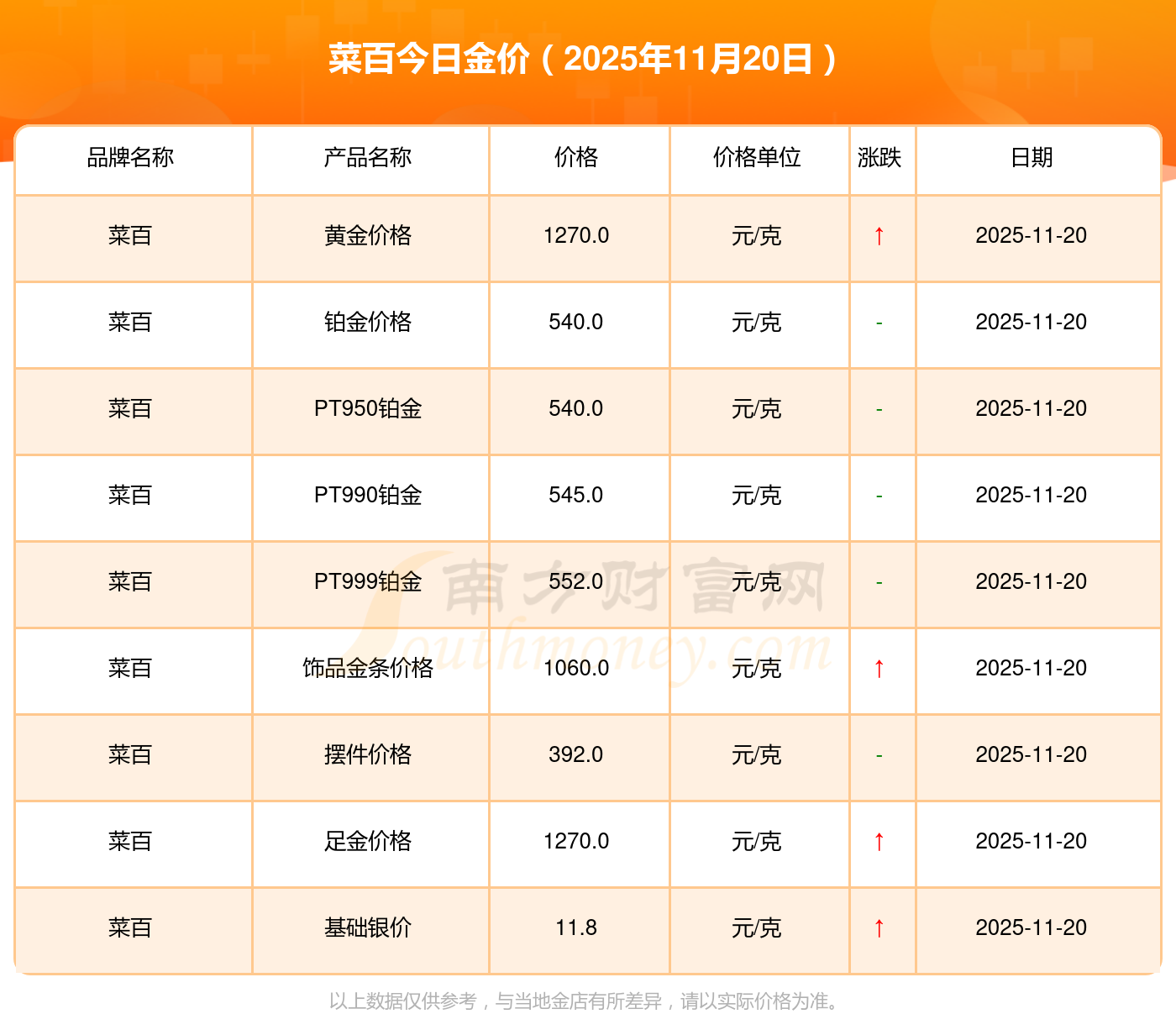現(xiàn)在菜百黃金價格是多少錢1克_2025年菜百今日金價是多少錢一克,最新菜百查詢,2025年11月20日菜百基礎(chǔ)銀價現(xiàn)在每克多少錢?最新菜百基礎(chǔ)銀價報價公布,一起來看看吧!