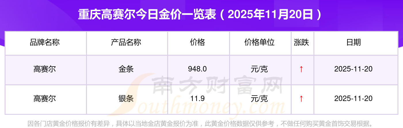 以上數(shù)據(jù)僅供參考,與當(dāng)?shù)亟鸬暧兴町悾?qǐng)以實(shí)際價(jià)格為準(zhǔn)。