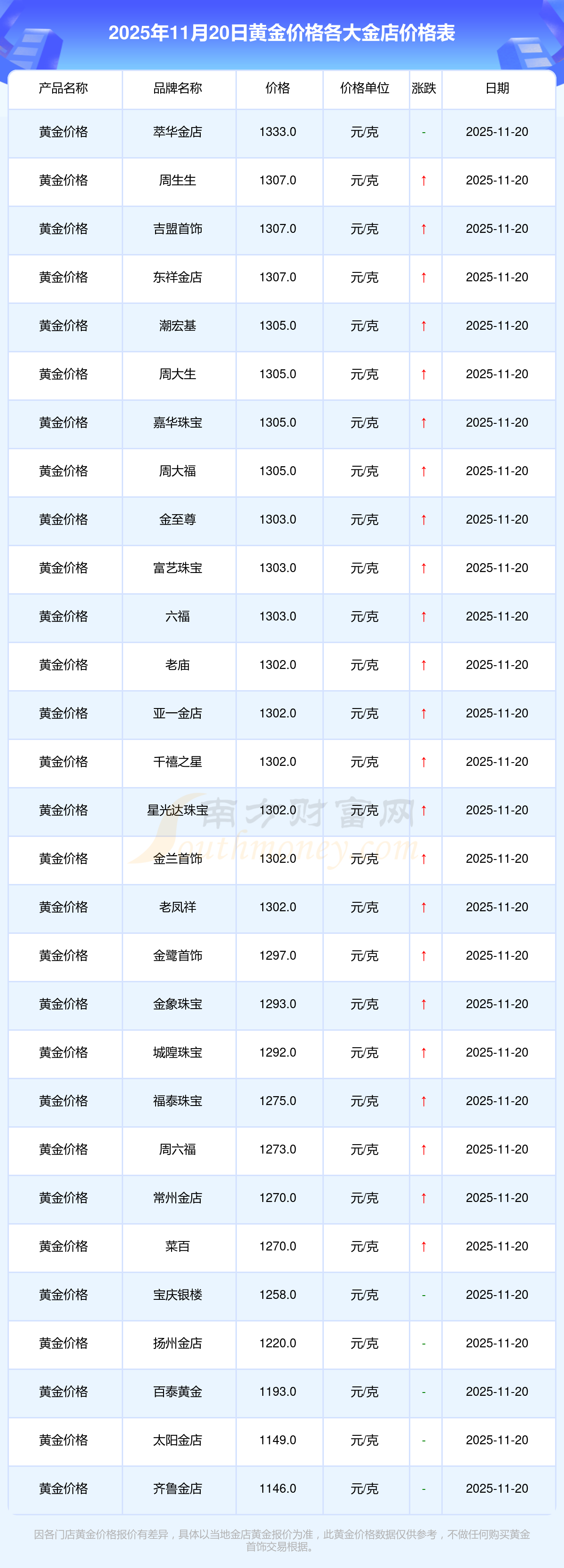 現(xiàn)在黃金多少錢一克?各大金店黃金價(jià)格最新價(jià)格匯總2025年11月20日