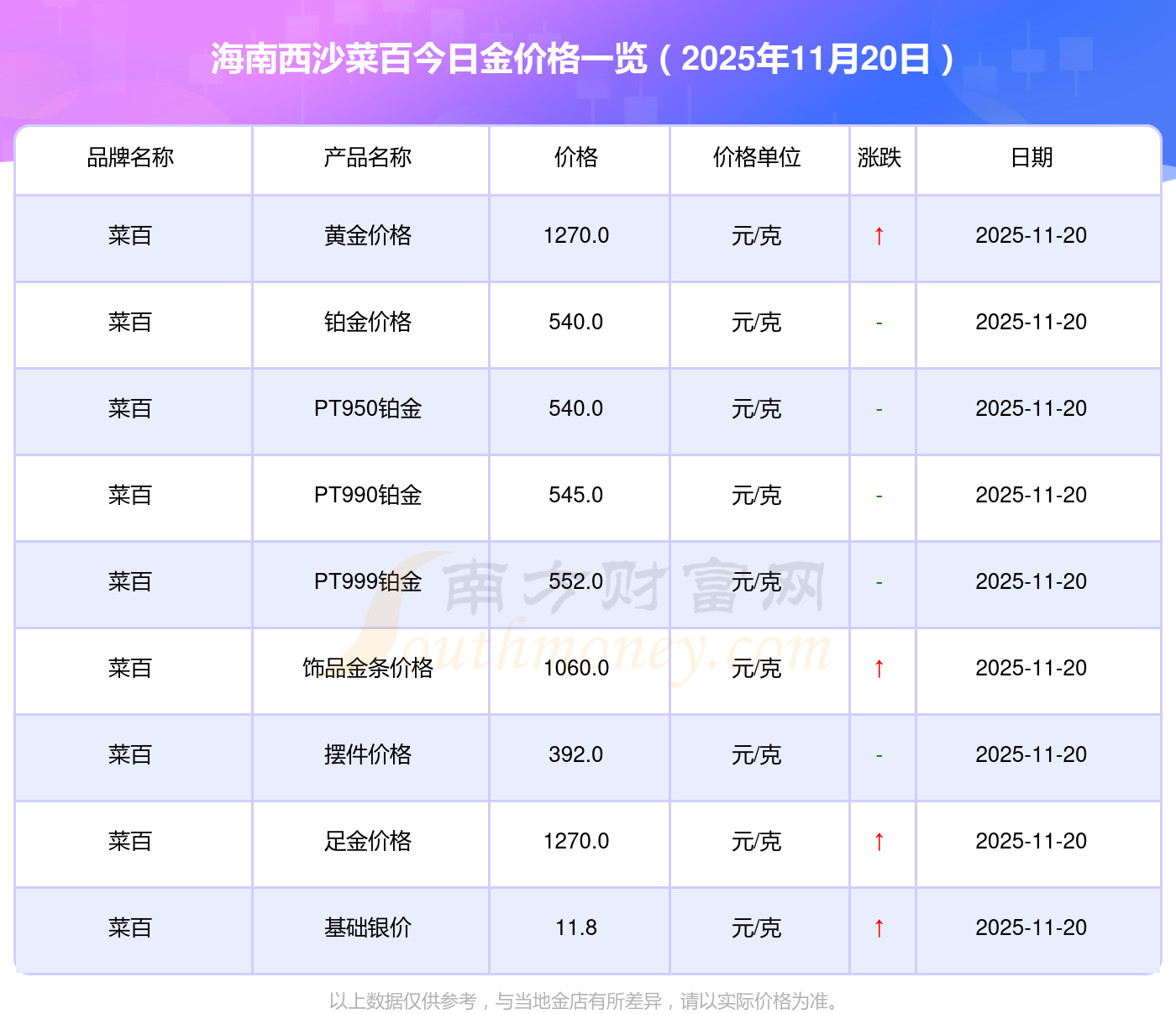 以上數(shù)據(jù)僅供參考,與當(dāng)?shù)仄放粕獭⒔鸬、企業(yè)及銀行營(yíng)業(yè)廳報(bào)價(jià)有所差異,依產(chǎn)品不同需另附工費(fèi),請(qǐng)以實(shí)際報(bào)價(jià)為準(zhǔn)。本站對(duì)價(jià)格等不作任何保證或承諾,請(qǐng)自行核實(shí)相關(guān)內(nèi)容,因此所引起的后果與本站無(wú)關(guān)。