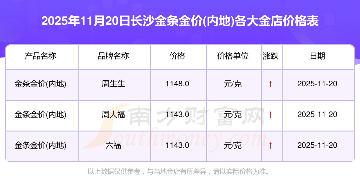 長沙各金店金條金價(內(nèi)地)表公布(2025年11月20日)