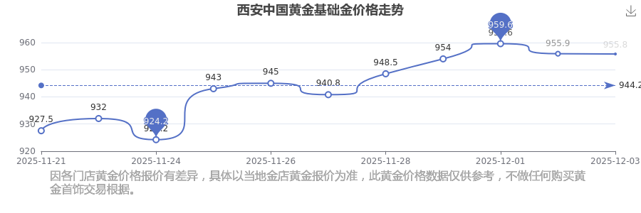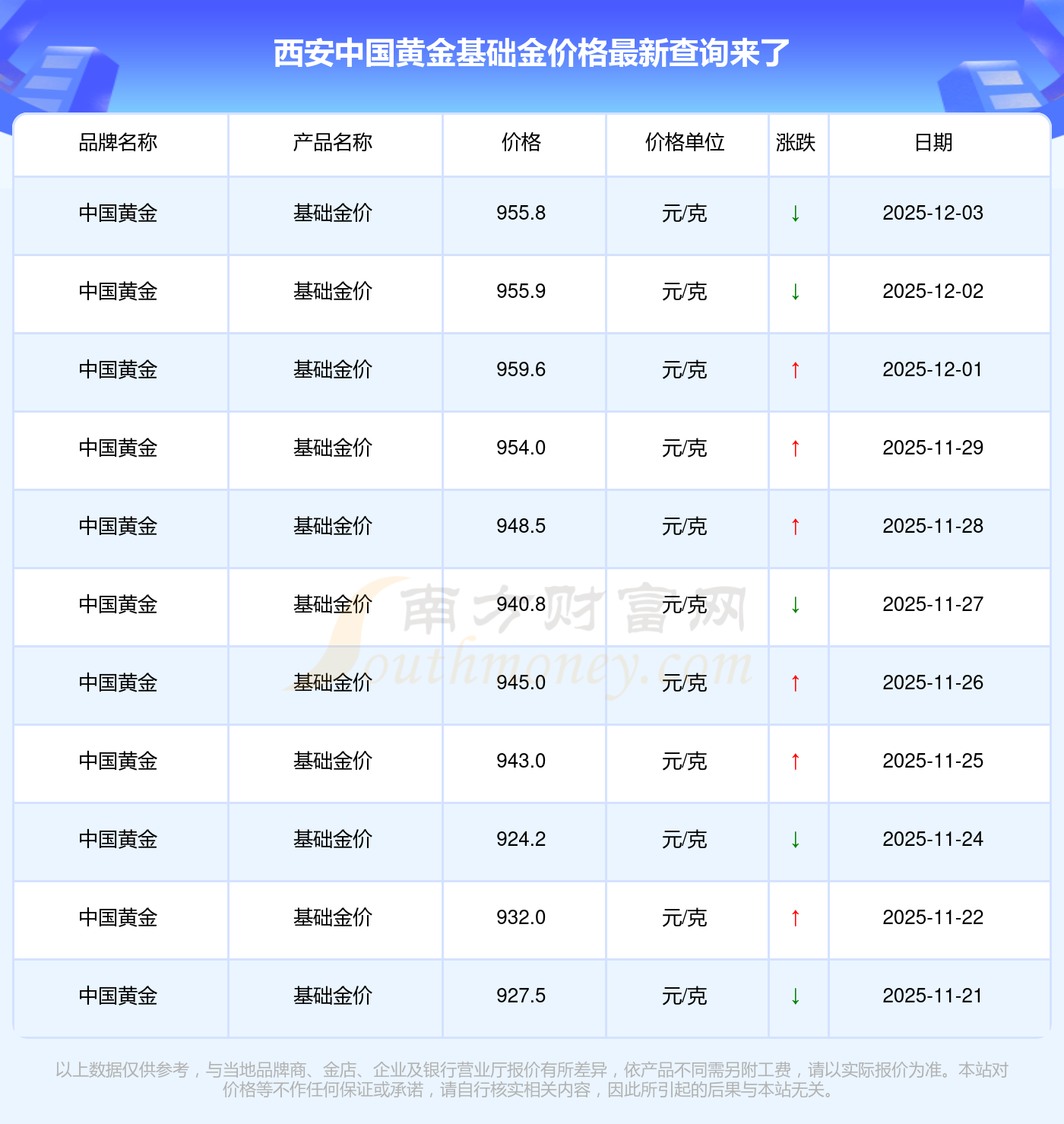 西安中國黃金在 2025年12月3日,基礎(chǔ)金價的售賣價格是 955.8元/克。