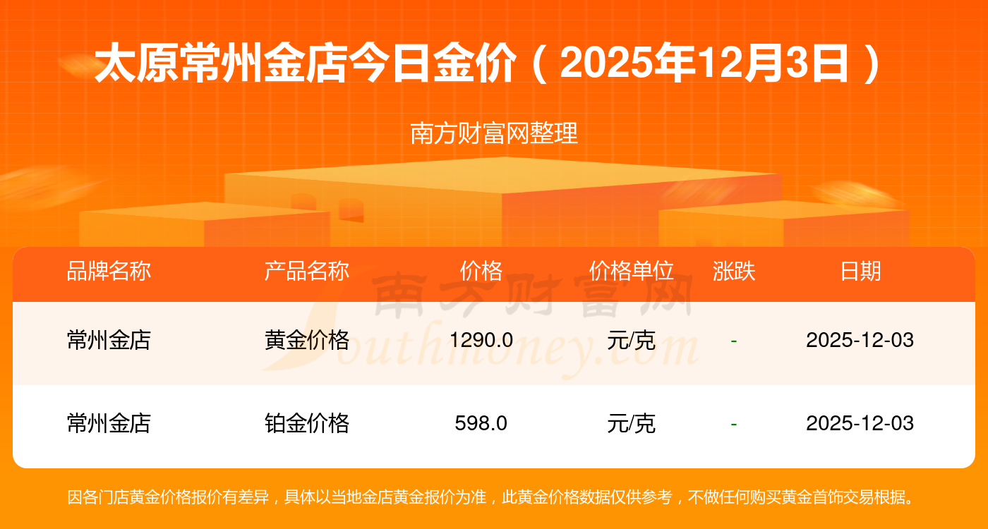 今日黃金價(jià)格具體多少?當(dāng)下每克黃金值多少錢呢?2025年12月3日太原常州金店最新價(jià)格:黃金價(jià)格1328.0元/克,鉑金價(jià)格663.0元/克,飾品金價(jià)(內(nèi)地)1328.0元/克,黃金飾品(香港)46770.0,鉑金價(jià)格(香港)18990.0,金條價(jià)格(香港)42190.0,金條金價(jià)(內(nèi)地)1165.0元/克,黃金價(jià)格1327.0元/克,鉑金價(jià)格600.0元/克,足金價(jià)格1327.0元/克,黃金價(jià)格1326.0元/克。
