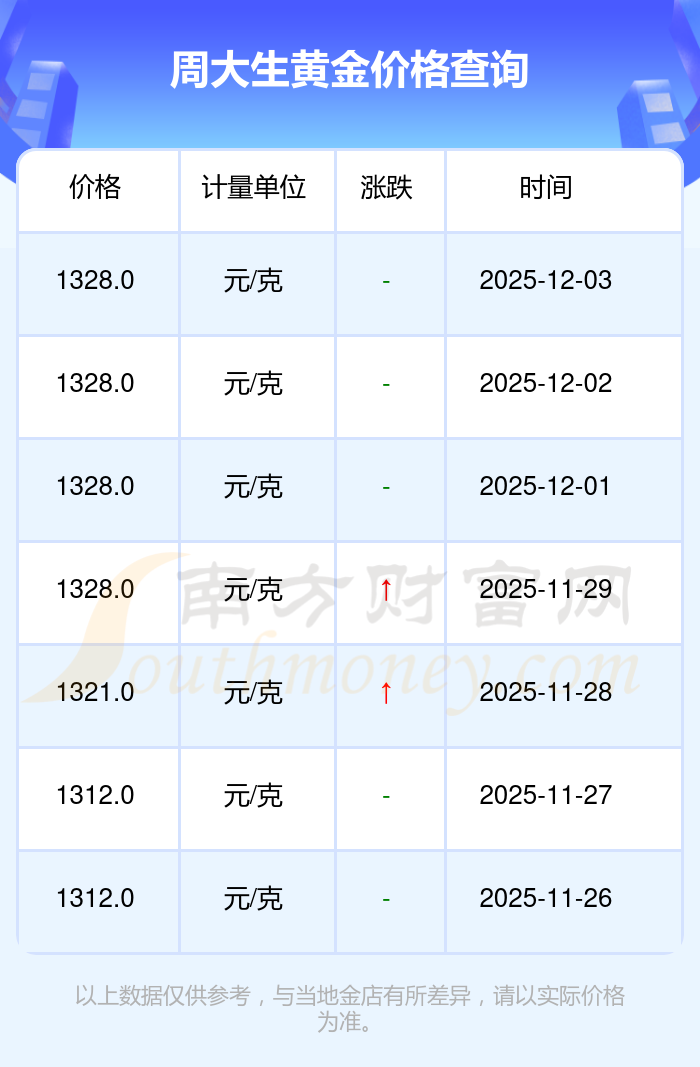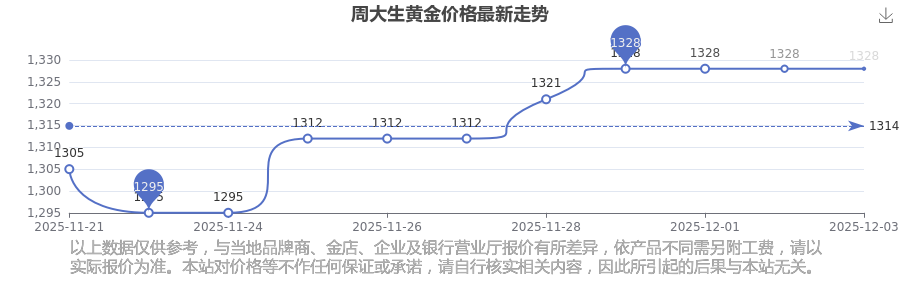 今天黃金價位是多少?現(xiàn)在一克黃金的價格是多少呀?黃金屬于優(yōu)良的導(dǎo)電導(dǎo)熱材料,具有良好的導(dǎo)熱特性。電子工業(yè)中的特殊電路設(shè)計常采用它,鑒于其化學(xué)穩(wěn)定性高、抗氧化性強(qiáng),能夠制作高精度電子元件。2025年12月3日周大生黃金價格是1328.0元/克。