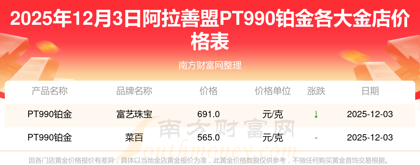 二、阿拉善盟各金店P(guān)T990鉑金價(jià)格匯總