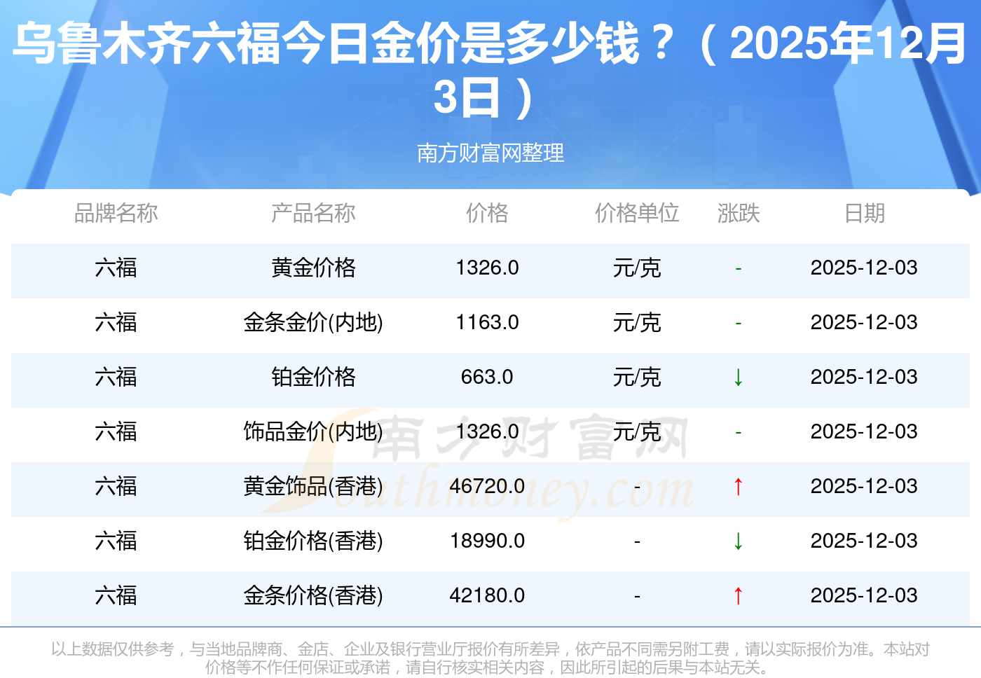 黃金價(jià)格1328.0元/克,鉑金價(jià)格663.0元/克,飾品金價(jià)(內(nèi)地)1328.0元/克,黃金飾品(香港)46770.0,鉑金價(jià)格(香港)18990.0,金條價(jià)格(香港)42190.0,金條金價(jià)(內(nèi)地)1165.0元/克,黃金價(jià)格1327.0元/克,鉑金價(jià)格600.0元/克,足金價(jià)格1327.0元/克,黃金價(jià)格1326.0元/克。