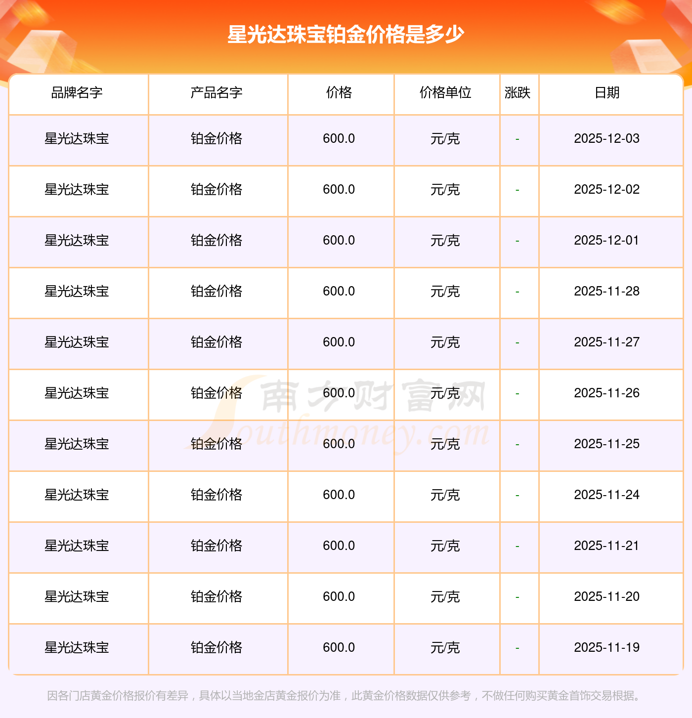 鉑金價格今天多少一克?星光達珠寶鉑金價格最新是多少?今日鉑金每克價格是多少?