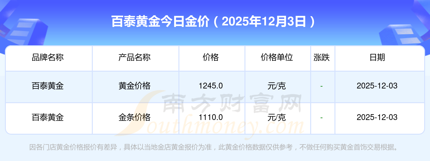 2025年12月3日百泰黃金金價(jià)查詢:黃金價(jià)格1328.0元/克,鉑金價(jià)格663.0元/克,飾品金價(jià)(內(nèi)地)1328.0元/克,黃金飾品(香港)46770.0,鉑金價(jià)格(香港)18990.0,金條價(jià)格(香港)42190.0,金條金價(jià)(內(nèi)地)1165.0元/克,黃金價(jià)格1327.0元/克,鉑金價(jià)格600.0元/克,足金價(jià)格1327.0元/克,黃金價(jià)格1326.0元/克。