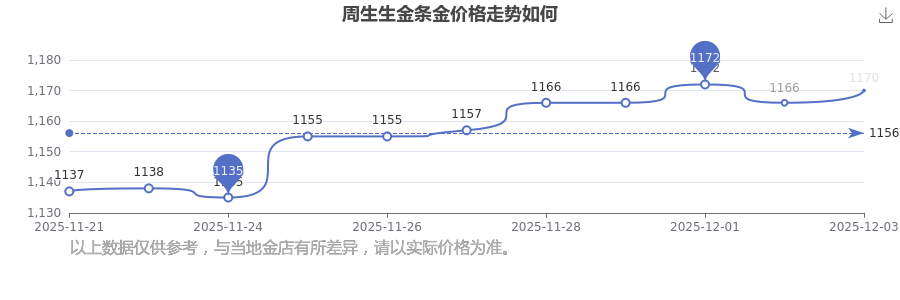 1170.0元/克是周生生在今日給出的 金條金價(jià)最新價(jià)格。