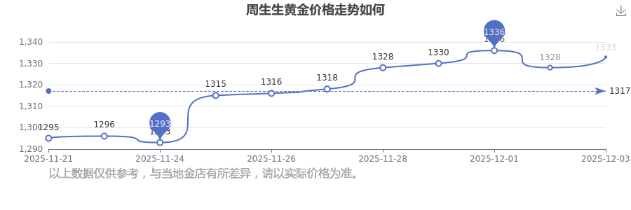 1333.0元/克成為周生生今日 黃金價(jià)格的最新交易的價(jià)格。