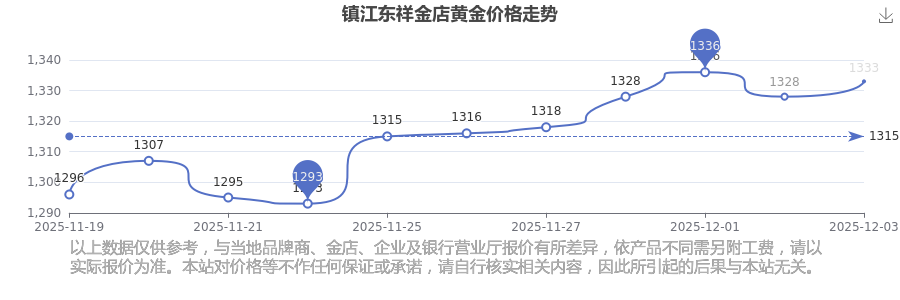 今日(2025年12月3日),鎮(zhèn)江東祥金店黃金價(jià)格:1333.0元/克。