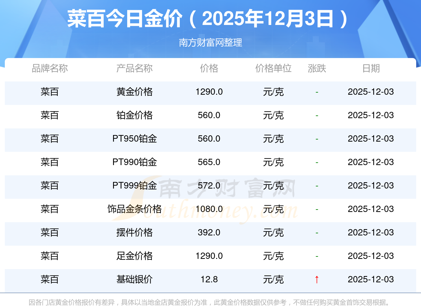 2025年12月3日菜百金條多少錢1克 現(xiàn)在上海浦東菜百黃金價格查詢