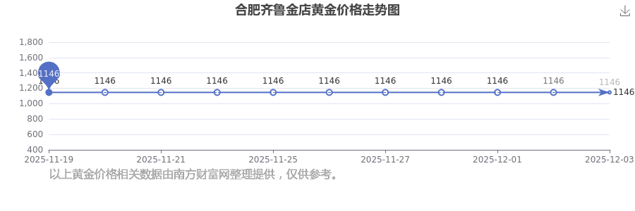 今日(2025年12月3日),合肥齊魯金店黃金價(jià)格:1146.0元/克。