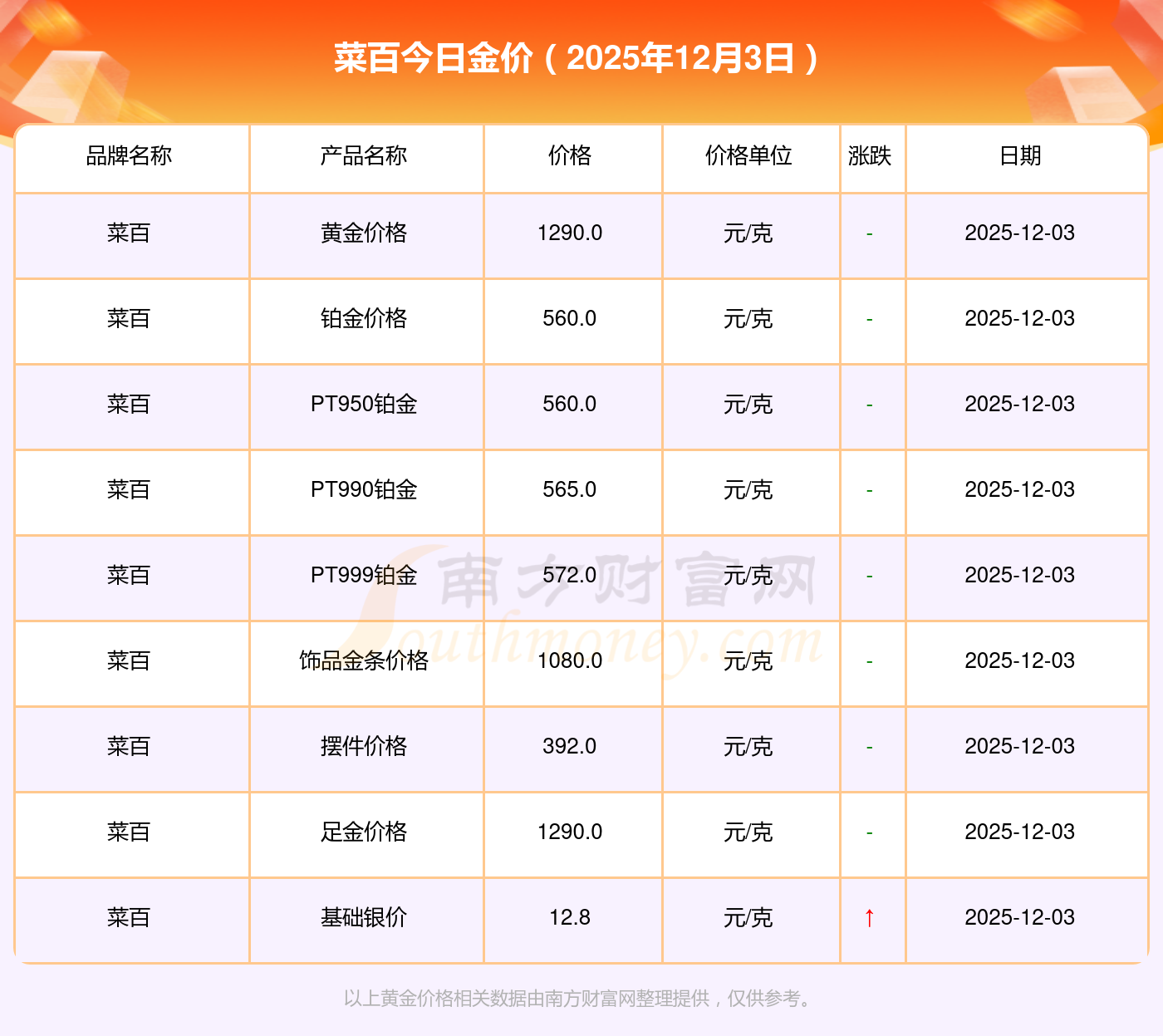 2025年12月3日菜百金條多少錢1克 現(xiàn)在福建福州菜百黃金價格查詢