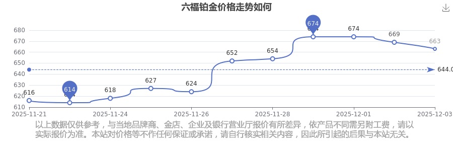 2025年12月3日六福鉑金價格最新為663.0元/克。