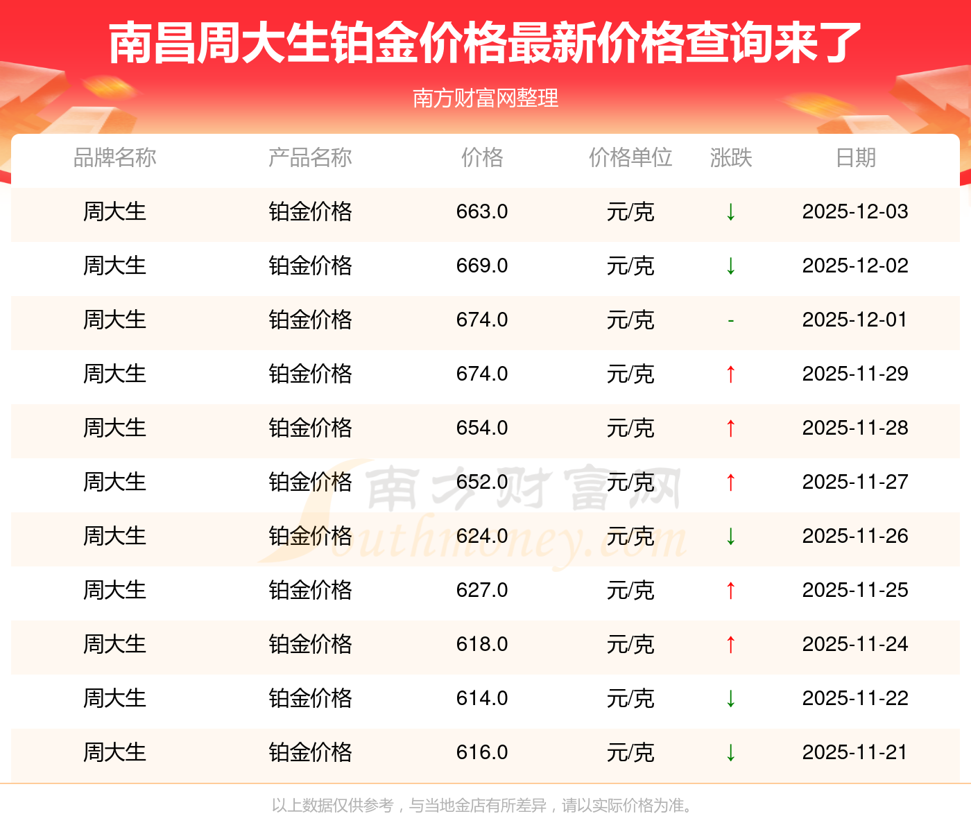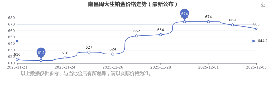 2025年12月3日南昌周大生鉑金價(jià)格為663.0元/克。
