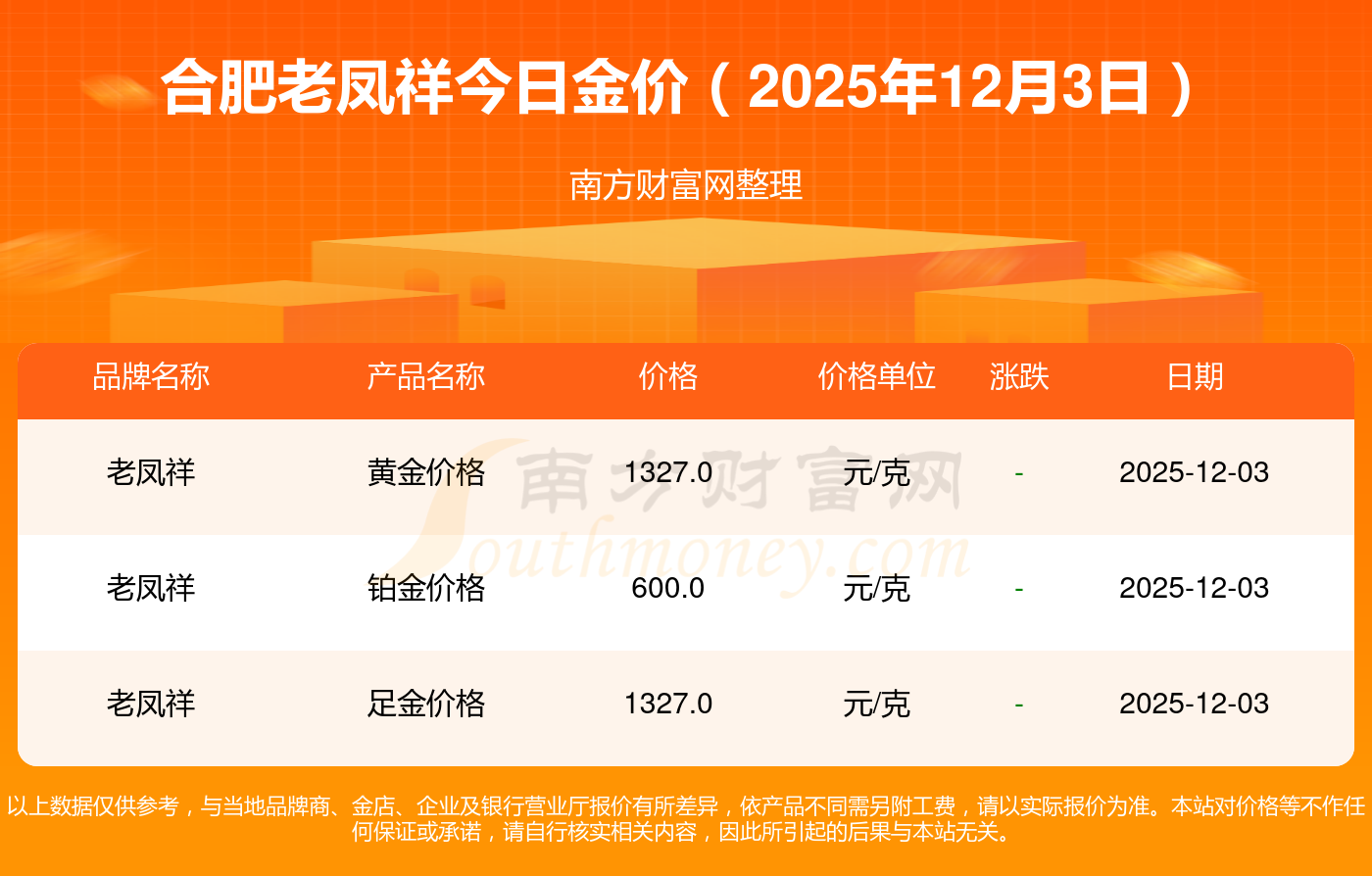 黃金價格1328.0元/克,鉑金價格663.0元/克,飾品金價(內(nèi)地)1328.0元/克,黃金飾品(香港)46770.0,鉑金價格(香港)18990.0,金條價格(香港)42190.0,金條金價(內(nèi)地)1165.0元/克,黃金價格1327.0元/克,鉑金價格600.0元/克,足金價格1327.0元/克,黃金價格1326.0元/克。