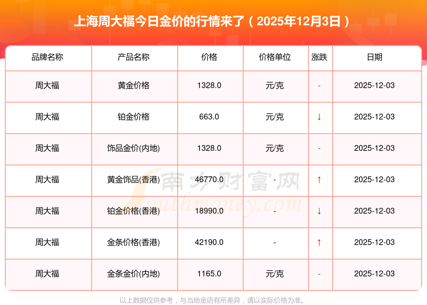 黃金價(jià)格1328.0元/克,鉑金價(jià)格663.0元/克,飾品金價(jià)(內(nèi)地)1328.0元/克,黃金飾品(香港)46770.0,鉑金價(jià)格(香港)18990.0,金條價(jià)格(香港)42190.0,金條金價(jià)(內(nèi)地)1165.0元/克,黃金價(jià)格1327.0元/克,鉑金價(jià)格600.0元/克,足金價(jià)格1327.0元/克,黃金價(jià)格1326.0元/克。