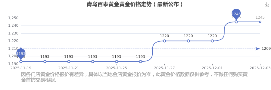 2025年12月3日這一天,青島百泰黃金的黃金價格以 1245.0元/克的價格售賣。