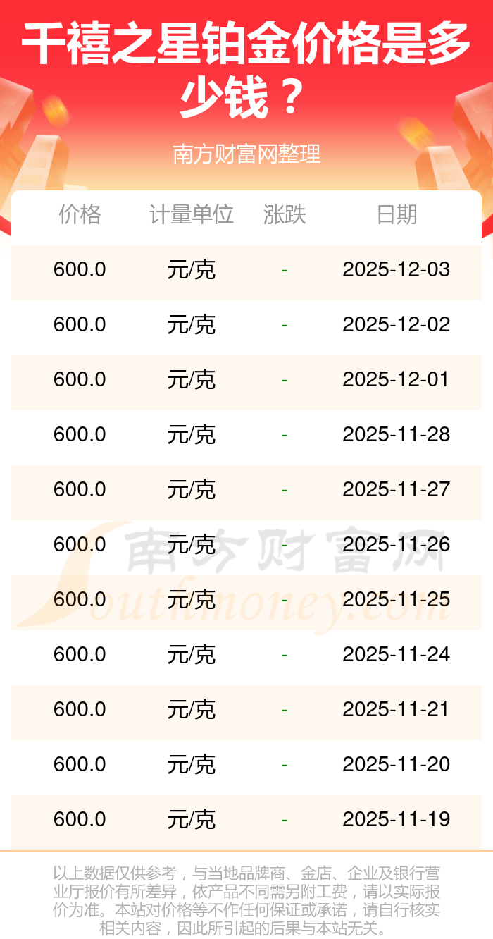 今日千禧之星 鉑金價(jià)格的最新定價(jià)為600.0元/克。
