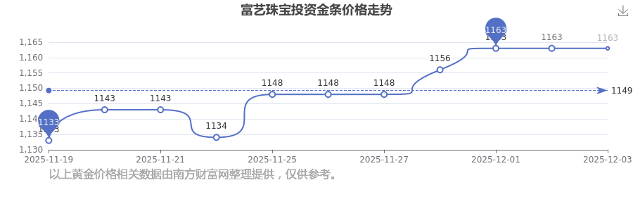 1163.0元/克是富藝珠寶在今日給出的 投資金條最新價格。