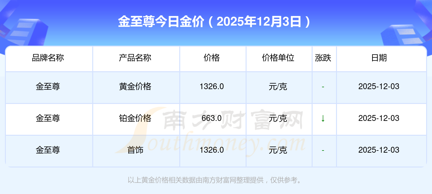 現(xiàn)在金至尊金條價格多少錢一克?今天黃金價格多少,2025年12月3日金至尊首飾現(xiàn)在每克多少錢?最新金至尊首飾報價公布,一起來看看吧!