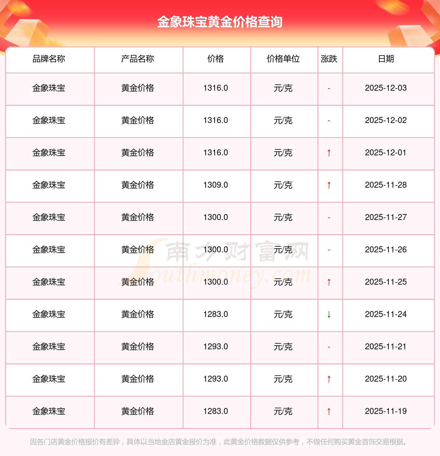 今日黃金售價多少?現(xiàn)在黃金一克值多少錢呢?黃金每一克的價格通常在多少數(shù)值左右?今日金象珠寶所公布的 黃金價格最新價格為1316.0元/克。
