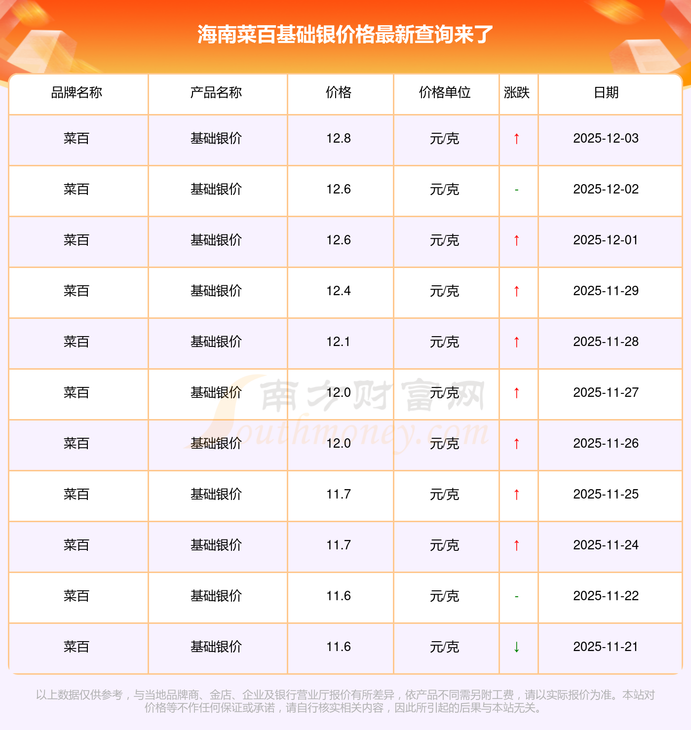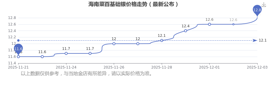 今日海南菜百基礎(chǔ)銀價(jià)的價(jià)格為12.8元/克。