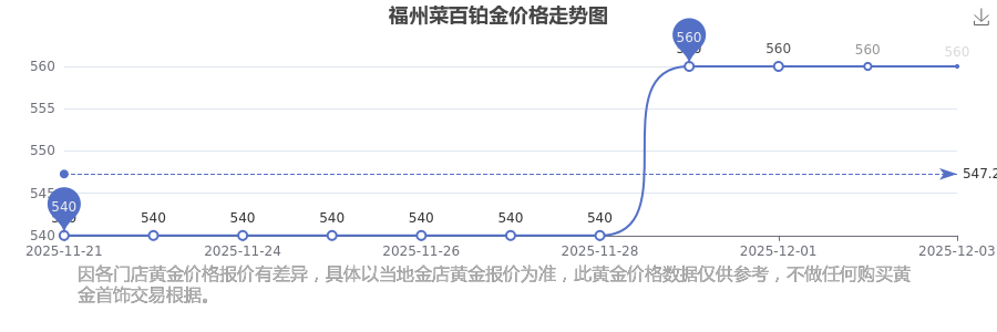 今日(2025年12月3日),福州菜百鉑金價(jià)格:560.0元/克。