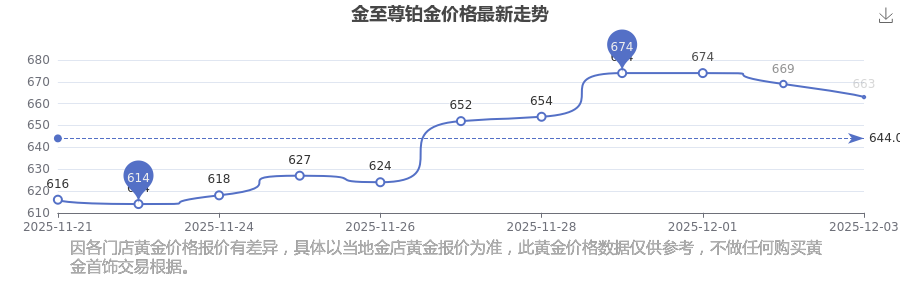 據(jù)了解,金至尊今日鉑金價(jià)格為663.0元/克。