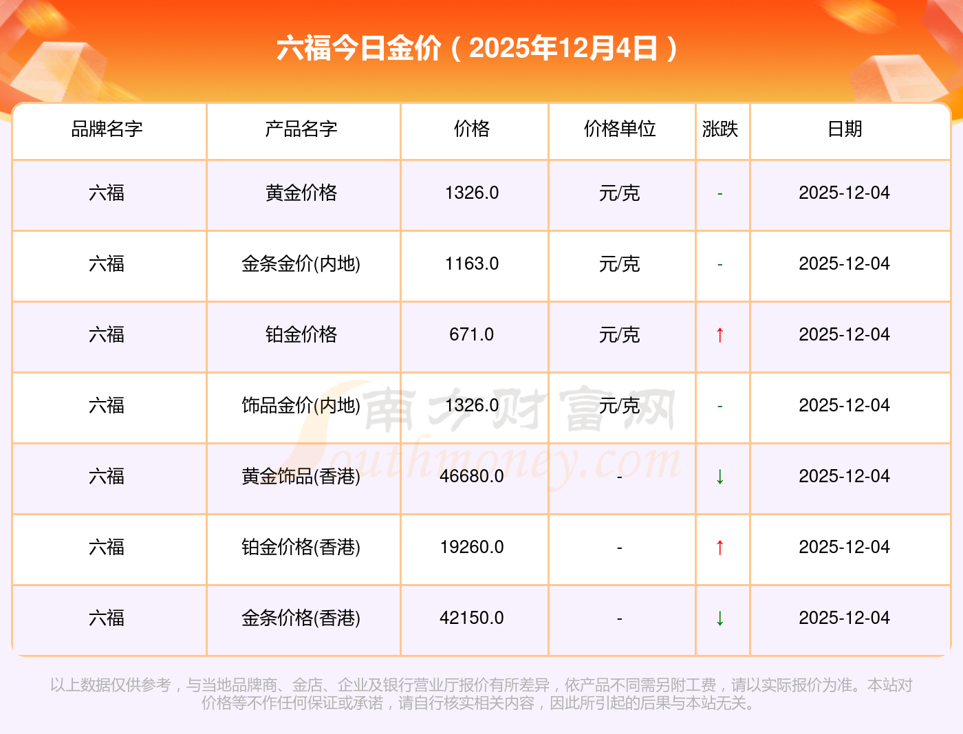 你了解六福金價今日價格嗎?以下是詳情數(shù)據(jù):黃金價格1328.0元/克,鉑金價格671.0元/克,飾品金價(內(nèi)地)1328.0元/克,黃金飾品(香港)46730.0,鉑金價格(香港)19260.0,金條價格(香港)42160.0,金條金價(內(nèi)地)1165.0元/克,黃金價格1325.0元/克,鉑金價格600.0元/克,足金價格1325.0元/克,黃金價格1326.0元/克。