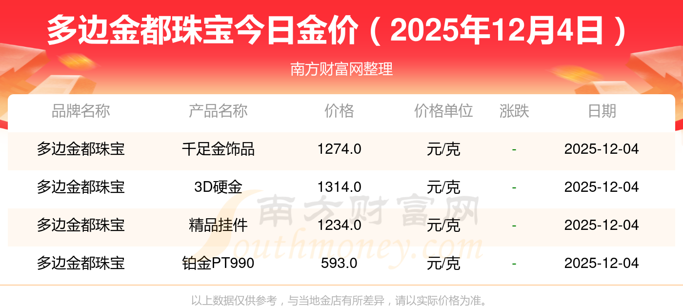 多邊金都珠寶今天的黃金價(jià)值幾何?詳情如下: