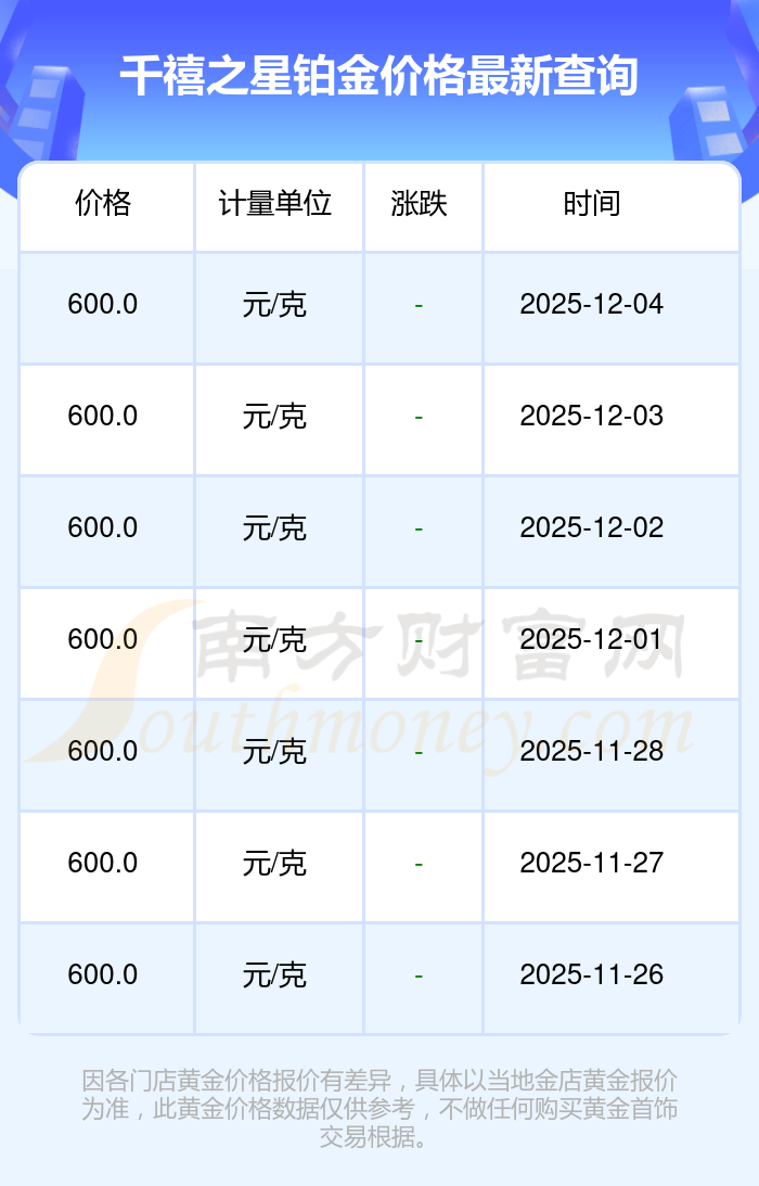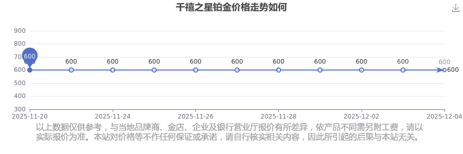 今日(2025年12月4日)千禧之星鉑金價(jià)格的價(jià)格為600.0元/克。