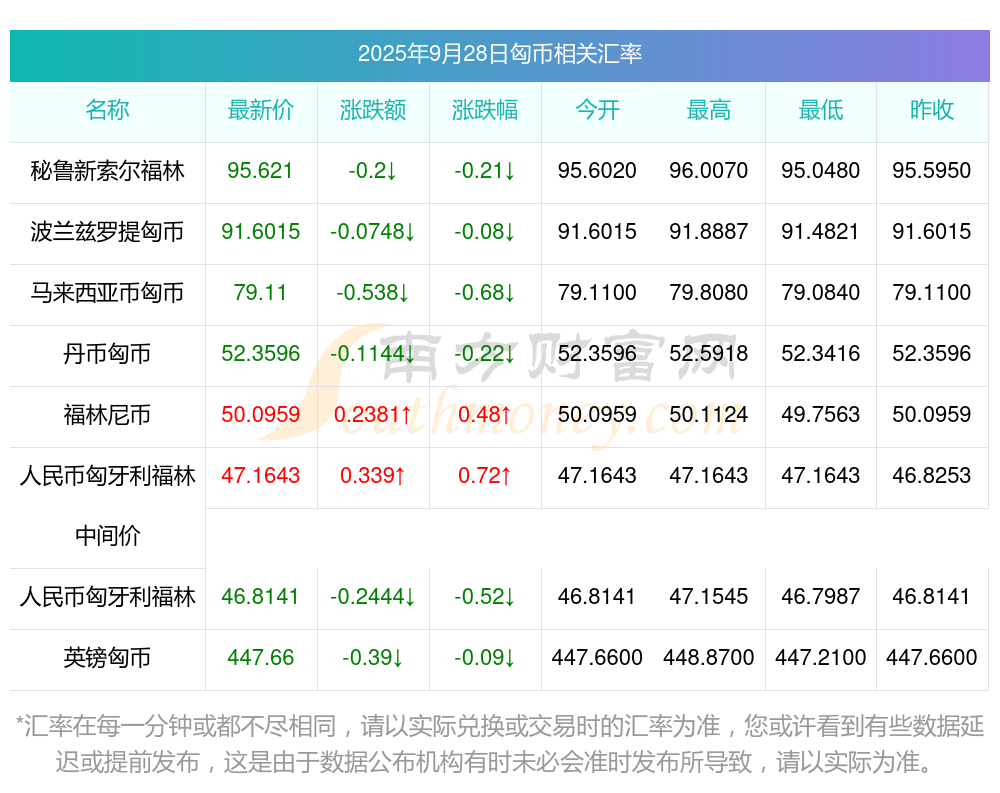 2025年9月28日匈幣相關匯率查詢