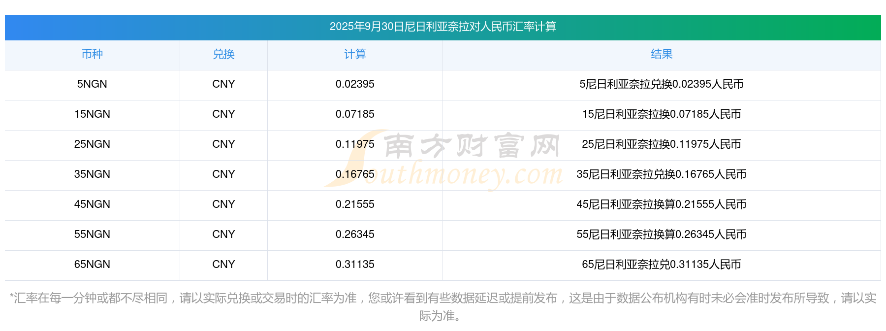 2025年9月30日4尼日利亞奈拉計(jì)算人民幣等于多少?