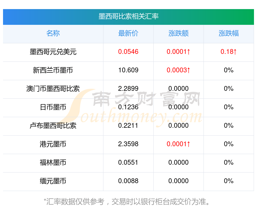 南方財(cái)富網(wǎng)為您提供墨西哥比索對(duì)雷亞爾匯率最新價(jià)格詳情。
