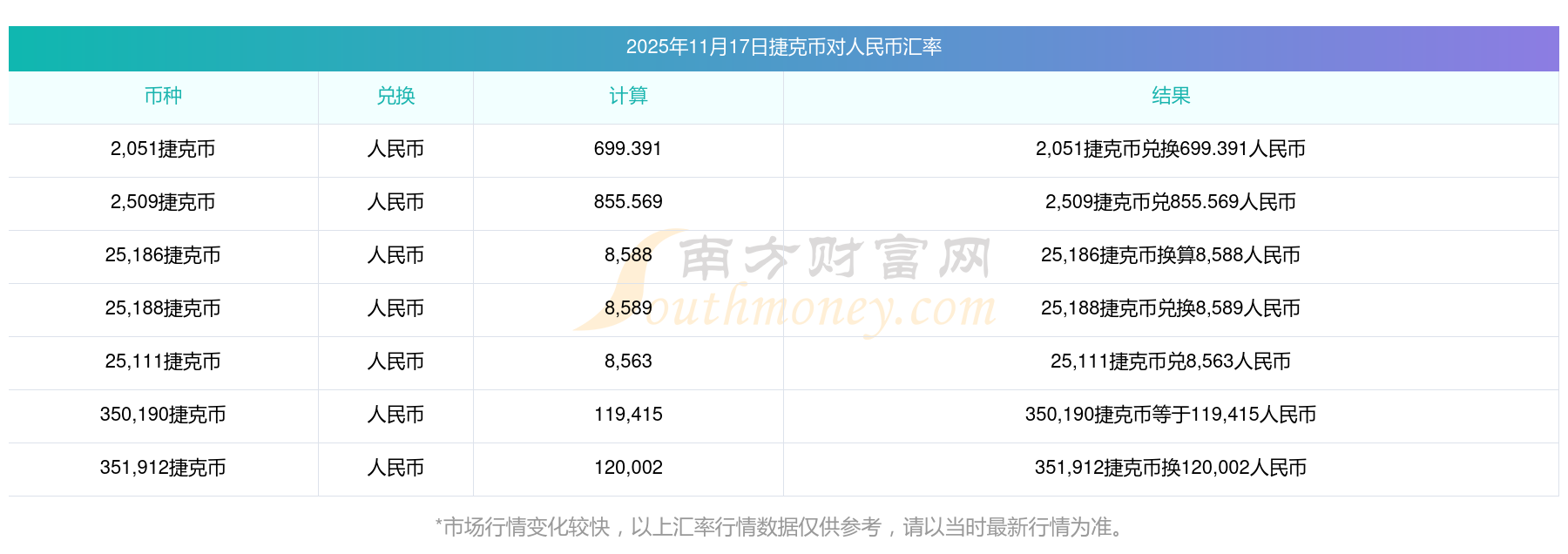 南方財(cái)富網(wǎng)為您提供捷克幣對人民幣匯率最新價(jià)格詳情。